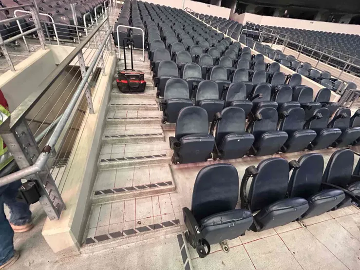 - To do this, they had to anchor into the concrete slabs and remove some of the stadium’s seating areas