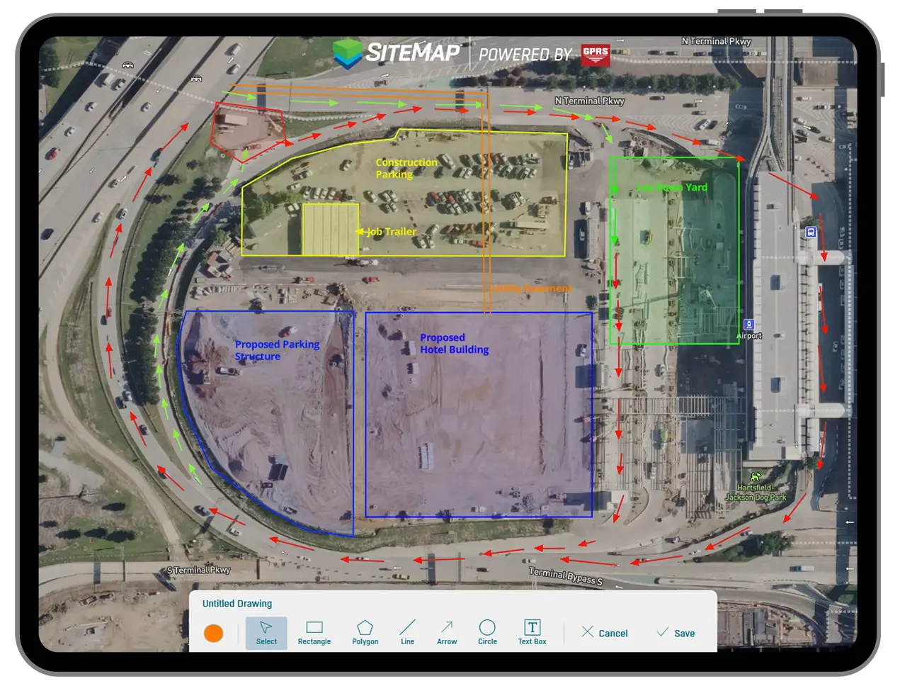 - Draw and save daily jobsite layouts